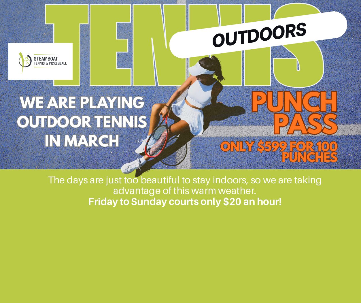 SIGN UP ON COURT RESERVE OR CALL (970) 879-8400